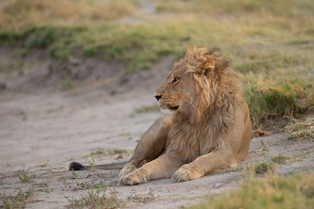 sub-adult male lion looking to the left