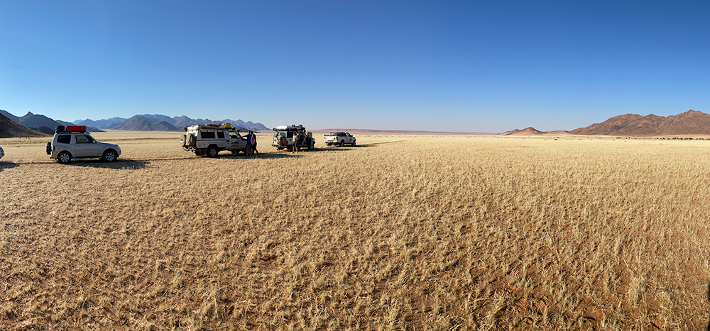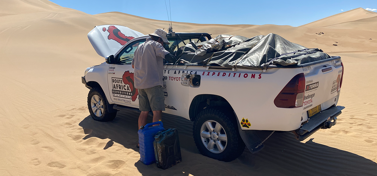 My travelling companions Rod and Linda had planned this trip to take place in May 2019, and of course, that was when the world paused, so the trip was postponed for 2 years. Finally we got the go-ahead, and set off on our adventures. Simon Wearne from Route Africa Expeditions led the trip, with Rod and Linda making up the "sweeper" unit - the guys at the back who help those of us who get stuck on the top of a dune!